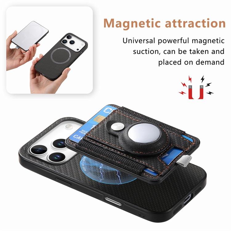 iPhone 17 Pro Mobilskal AirTag Detachable korthållare Läder + TPU + PC - Svart