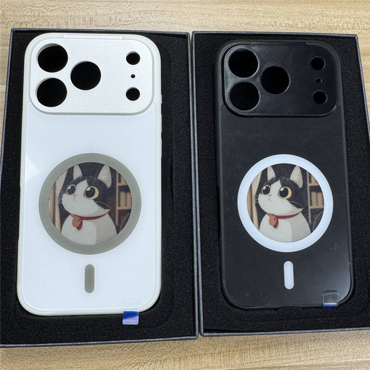 iPhone 17 Pro Mobilskal MagSafe 4 Colors NFC DIY Customized Smart E-Ink Round Screen - Svart