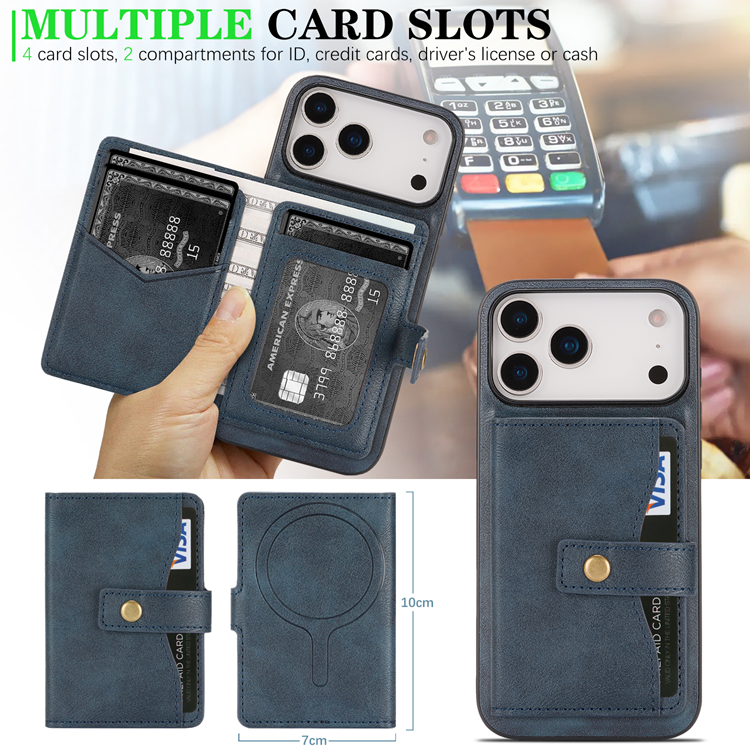 iPhone 17 Pro Mobilskal MagSafe Kickstand Detachable Korthållare PU Läder Coated TPU - Blå