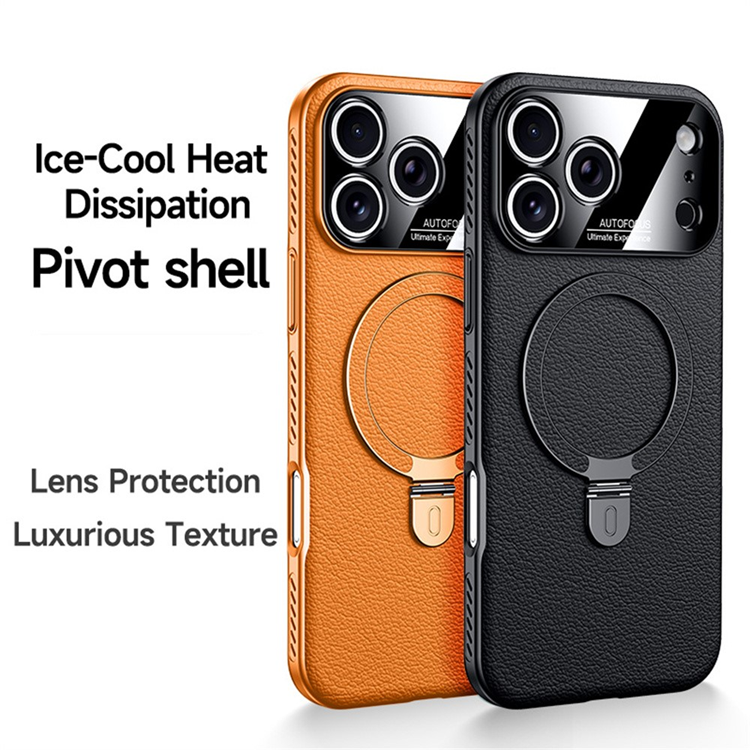 iPhone 17 Pro Mobilskal MagSafe Kickstand Electroplated Cooling PC PU Läder Cooling - Orange