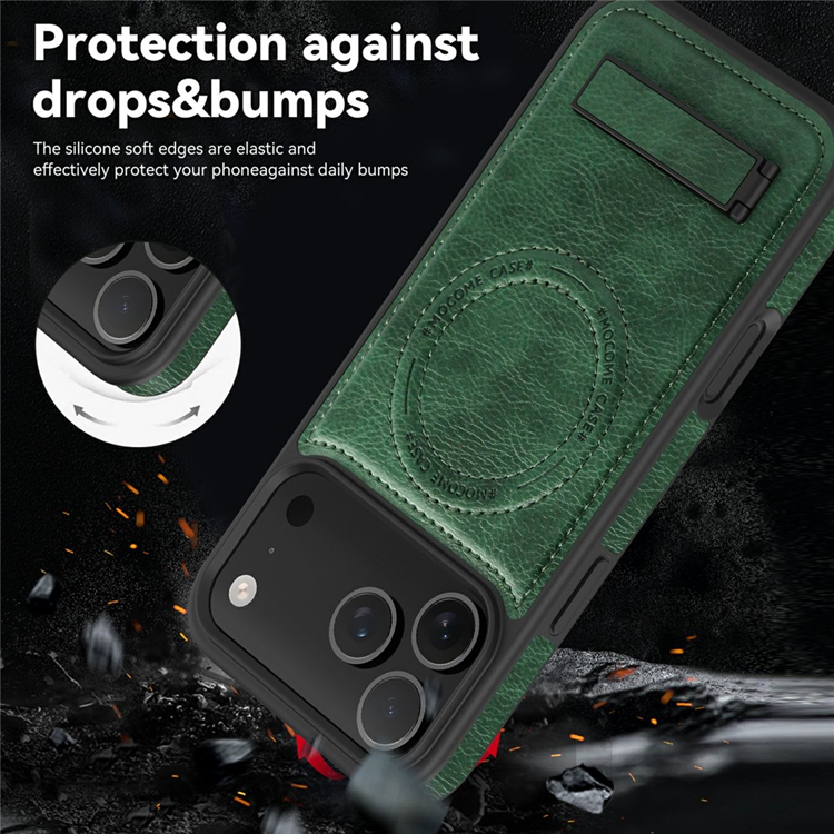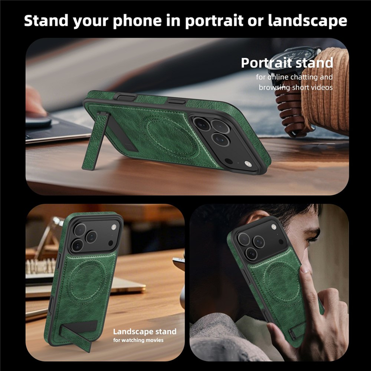 iPhone 17 Pro Mobilskal MagSafe Kickstand Läder - Svartgrön