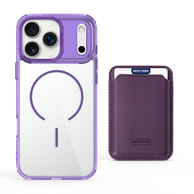 iPhone 17 Pro Mobilskal MagSafe med Korthållare TPU + PC - Transparent Lila