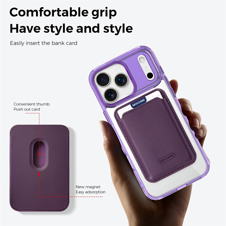 Ge din mobil en kombination av stil, funktion och säkerhet med detta genomtänkta MagSafe-kompatibla mobilskal. Tack vare den inbyggda magnetringen fungerar skalet sömlöst med MagSafe-laddning och fäster dessutom säkert på magnetiska bilhållare – perfekt för både vardagsanvändning och resor. Den medföljande magnetiska kortfickan fästs enkelt på skalet och håller 1–2 kort på plats utan att göra mobilen klumpig, vilket gör den till en smart lösning för pendling och resor.