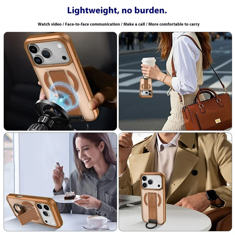 IPhone 17 Pro Mobilskal Magsafe Metal D-Ring Kickstand - Khaki (Brun)