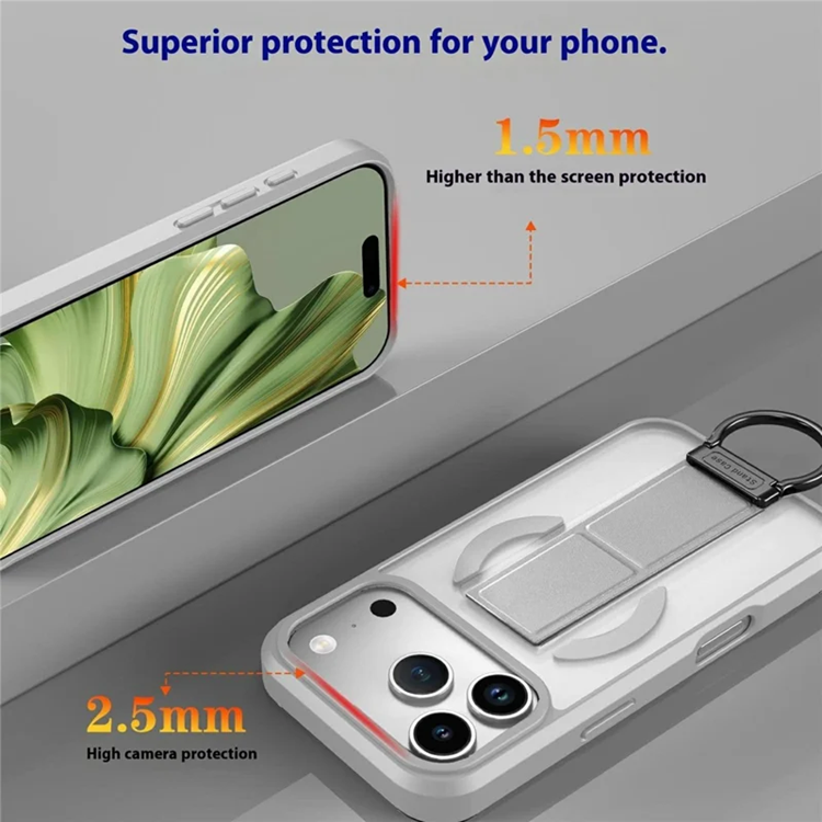 IPhone 17 Pro Mobilskal Magsafe Metal D-Ring Kickstand - Grå (Grå)