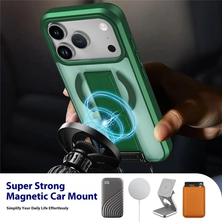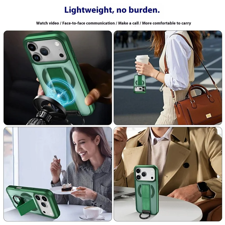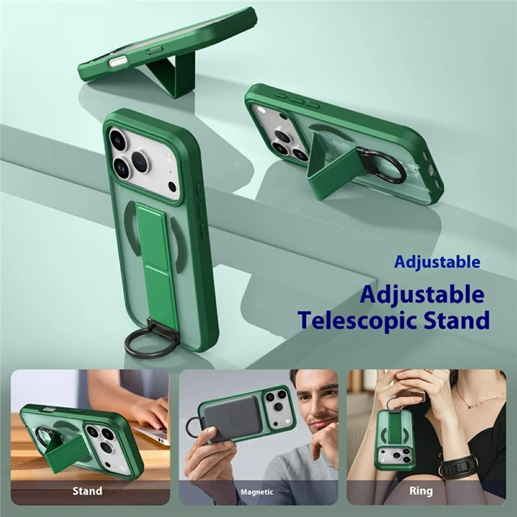 IPhone 17 Pro Mobilskal Magsafe Metal D-Ring Kickstand - Grön (Grön)