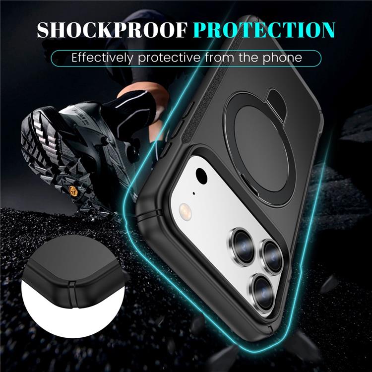 iPhone 17 Pro Mobilskal MagSafe Stötsäker Rotating Kickstand TPU + PC - Svart