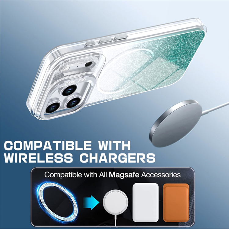 iPhone 17 Pro Mobilskal MagSafe Shockproof Glitter Gradient TPU + PC - Grön
