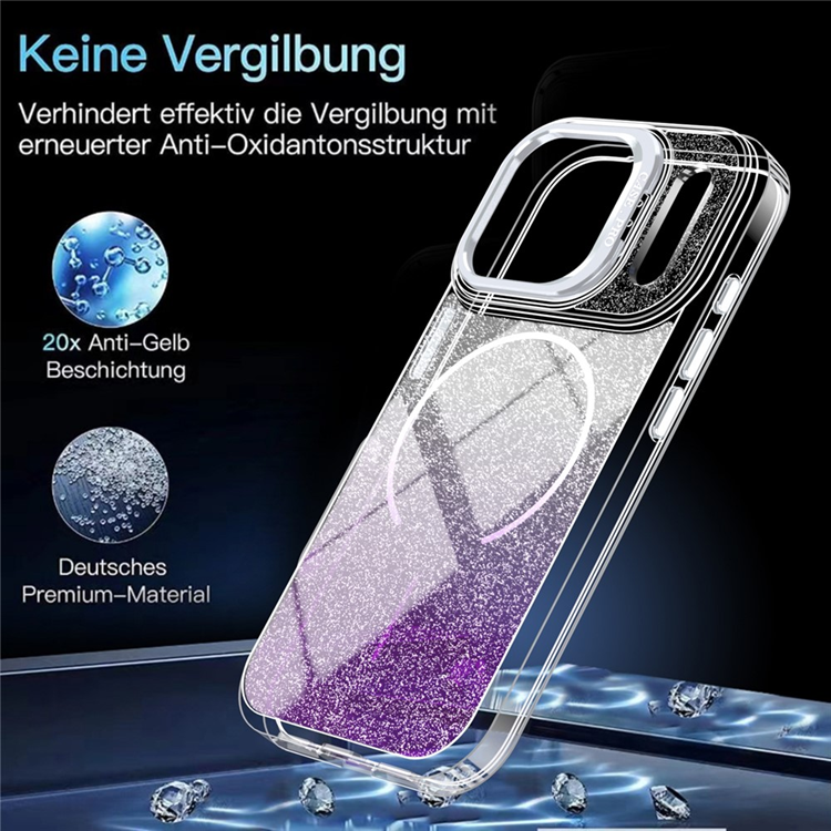iPhone 17 Pro Mobilskal MagSafe Shockproof Glitter Gradient TPU + PC - Lila