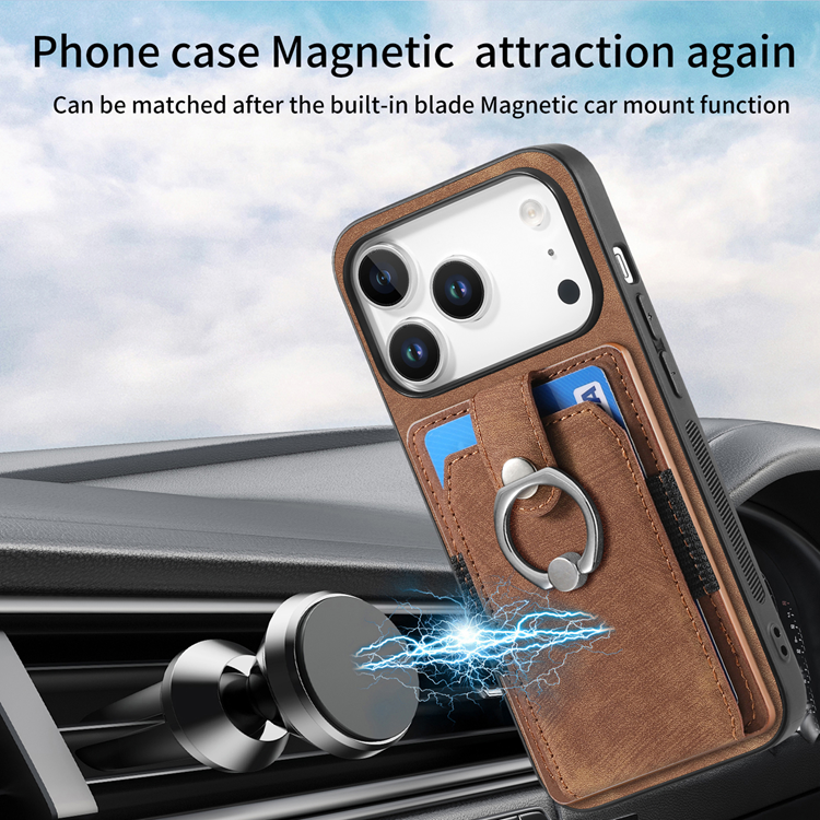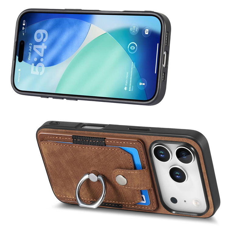 iPhone 17 Pro Mobilskal med Korthållare Läder Kickstand - Brun
