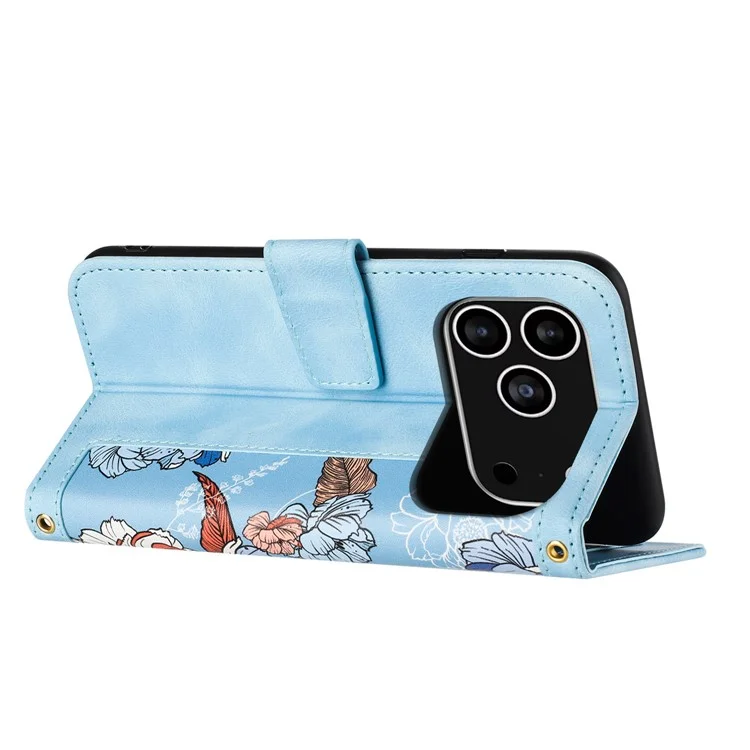 iPhone 17 Pro Plånboksfodral Floral Läder - Ljusblå