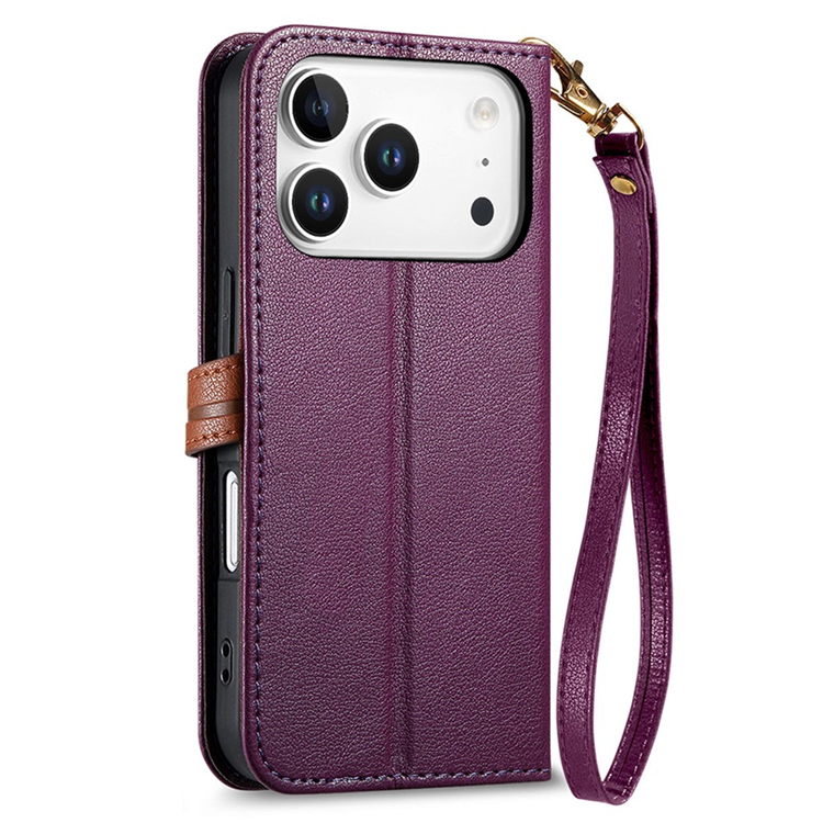 iPhone 17 Pro Plånboksfodral med Handrem Leaf Shape Magnetiskt Spänne Läder - Lila