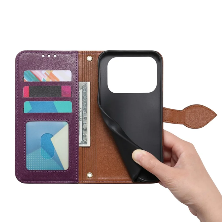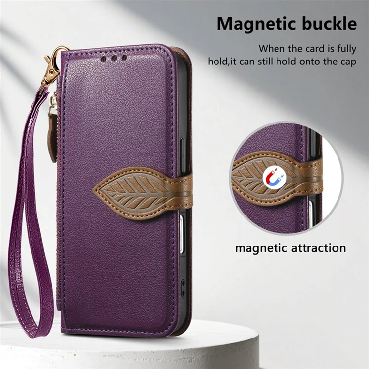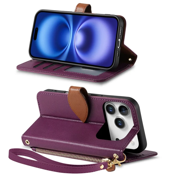IPhone 17 Pro Plånboksfodral Leaf Magnetiskt Spänne Konstläder - Lila (Lila)