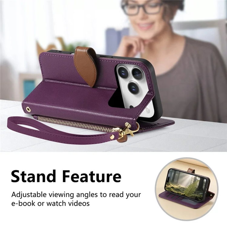 Handla denna produkt iPhone 17 Pro Plånboksfodral Leaf Magnetiskt Spänne Konstläder - Lila