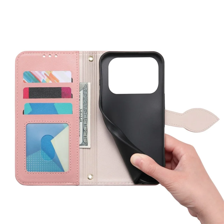 iPhone 17 Pro Plånboksfodral med Handrem Leaf Shape Magnetiskt Spänne Läder - Roséguld