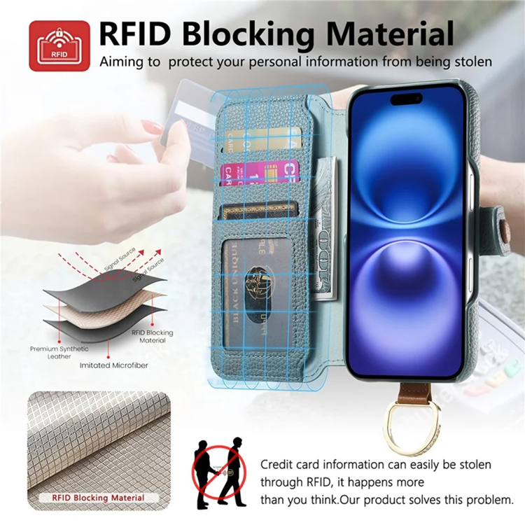 iPhone 17 Pro Plånboksfodral RFID Blocking Zipper PU Läder - Blå