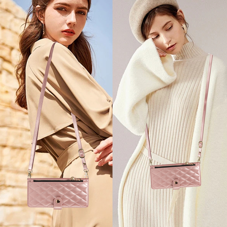 iPhone 17 Pro Plånboksfodral med rem Rhombus Läder - Roséguld