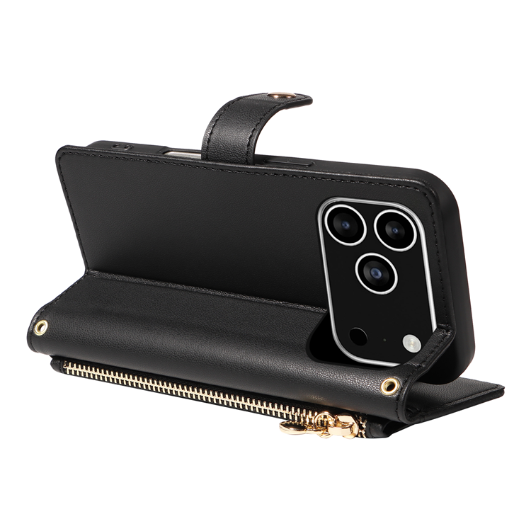 iPhone 17 Pro Plånboksfodral med rem Rhombus Läder - Svart