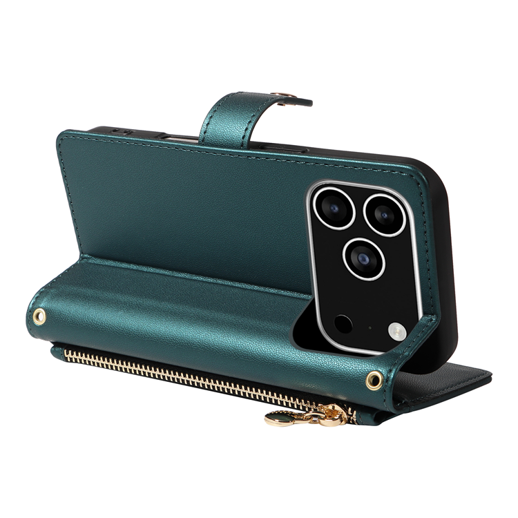 iPhone 17 Pro Plånboksfodral med rem Rhombus Läder - Svartgrön