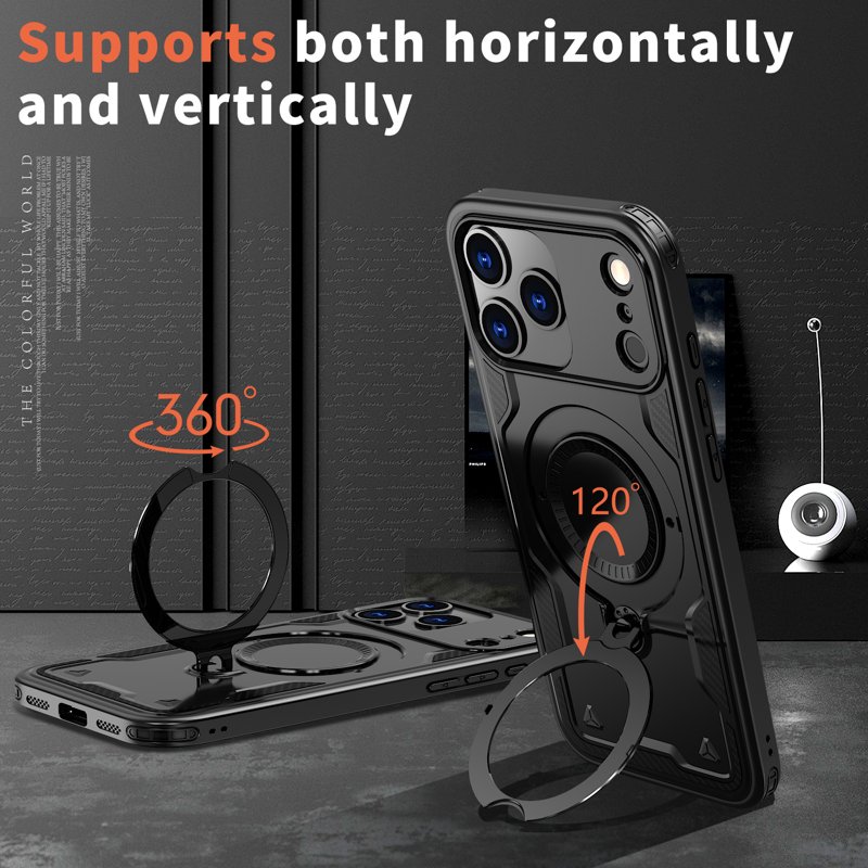 Detta fodral erbjuder militärklassat skydd för din enhet. Tillverkat av hållbara PC- och TPU-material, ger det stöt- och fallskydd. Med en 360-graders roterande kickstand kan du enkelt njuta av handsfree-visning. Fodralet är också kompatibelt med MagSafe-laddare för snabb och säker laddning.