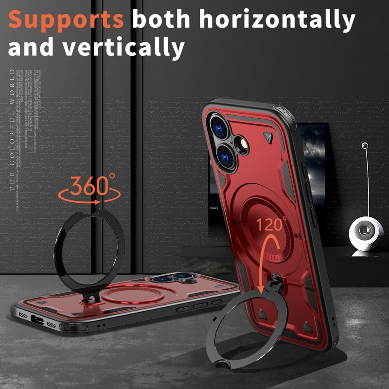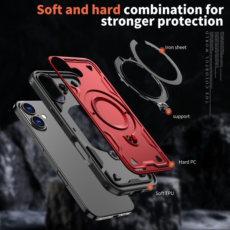 Detta fodral erbjuder militärklassat skydd för din enhet. Tillverkat av hållbara PC- och TPU-material, ger det ett pålitligt skydd mot stötar och fall. Med en 360-graders roterande kickstand kan du enkelt njuta av handsfree-visning. Fodralet är också kompatibelt med MagSafe-laddare för snabb och säker laddning.