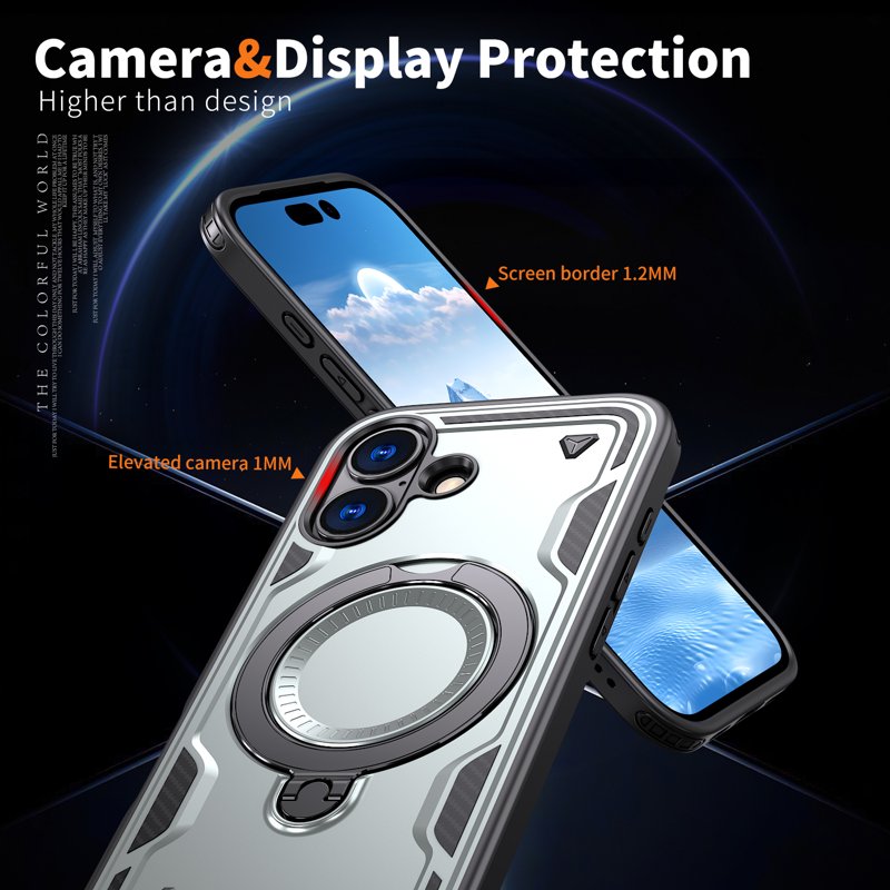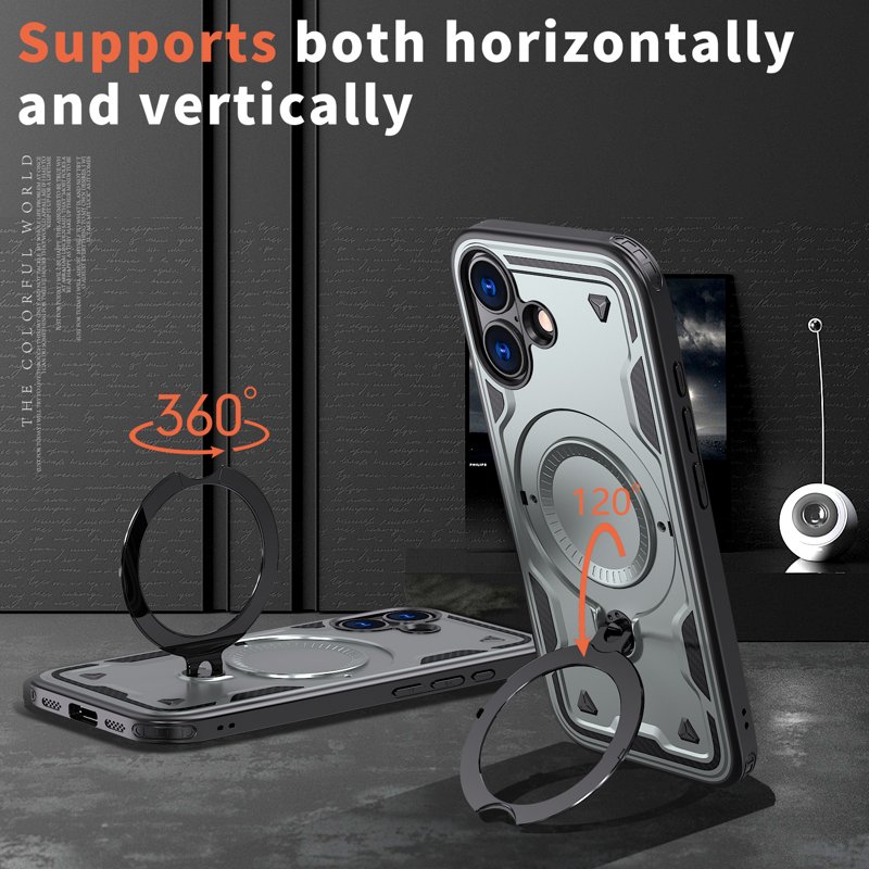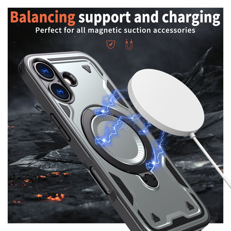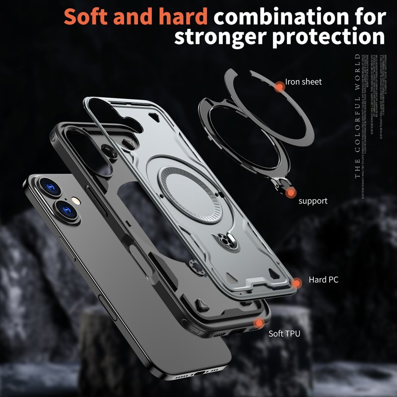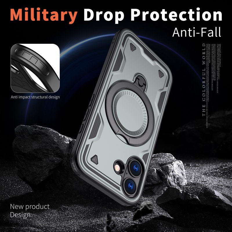 Detta fodral erbjuder militärklassad skydd för din smartphone. Tillverkat av hållbara PC- och TPU-material, ger det ett effektivt skydd mot stötar och fall. Med en inbyggd kickstand och MagSafe-kompatibilitet är detta fodral både praktiskt och funktionellt. Håll din enhet säker och njut av en smidig användarupplevelse.