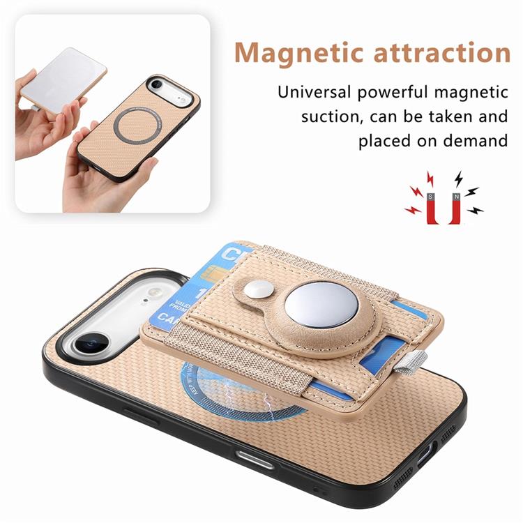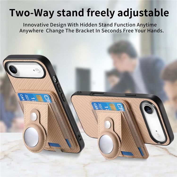 iPhone 17 Air Mobilskal AirTag Detachable korthållare Läder + TPU + PC - Apricot