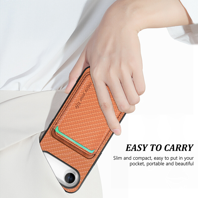 Ge din iPhone Air ett mobilskal som kombinerar premiumdesign, smart funktionalitet och pålitligt skydd. Skalet är tillverkat i en mix av PC, TPU och PU-läder med en sofistikerad kolfibertextur som ger ett säkert grepp och en elegant finish. Resultatet är en modern look som känns lika exklusiv som praktisk.