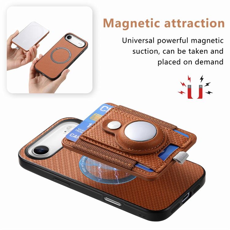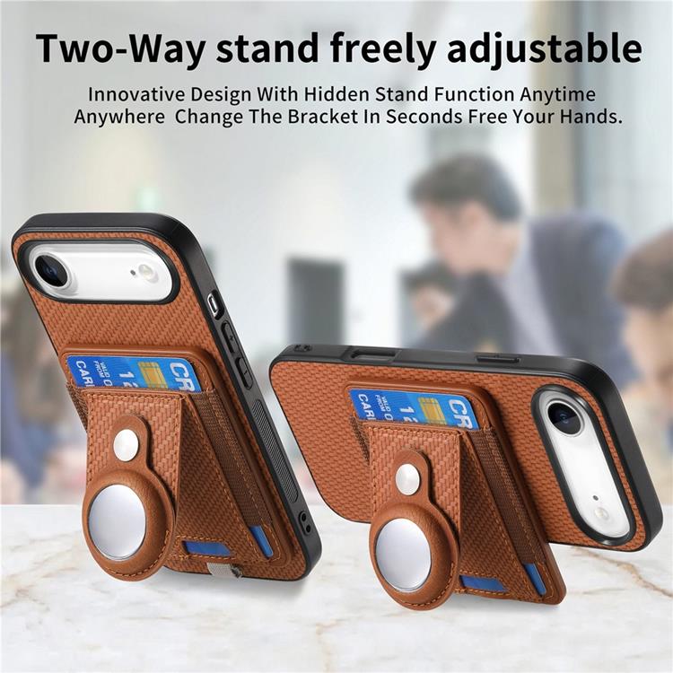 iPhone 17 Air Mobilskal AirTag Detachable korthållare Läder + TPU + PC - Brun