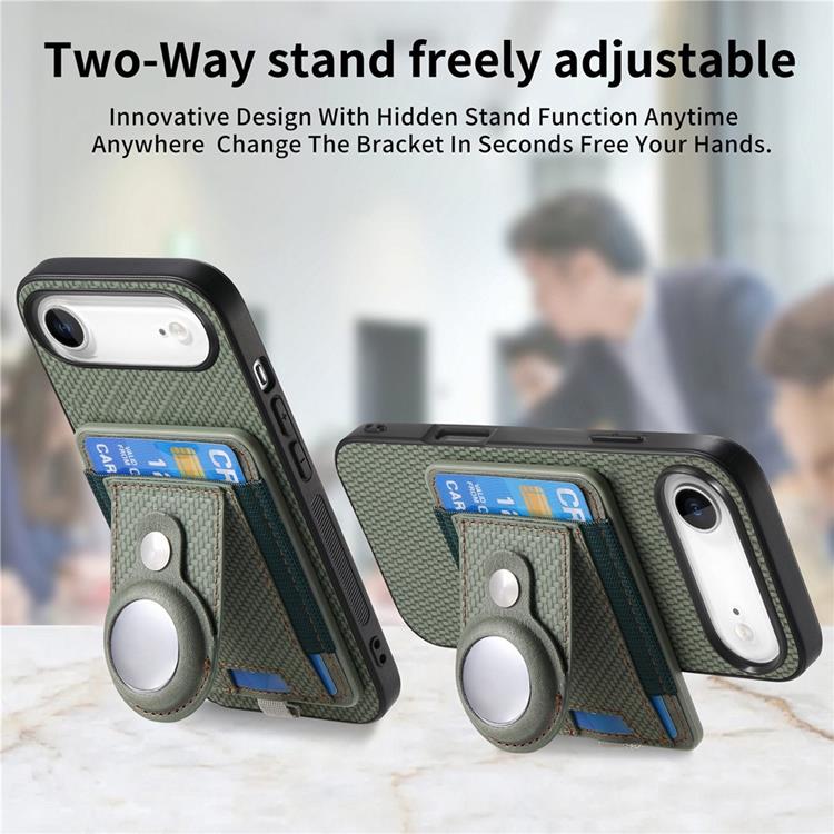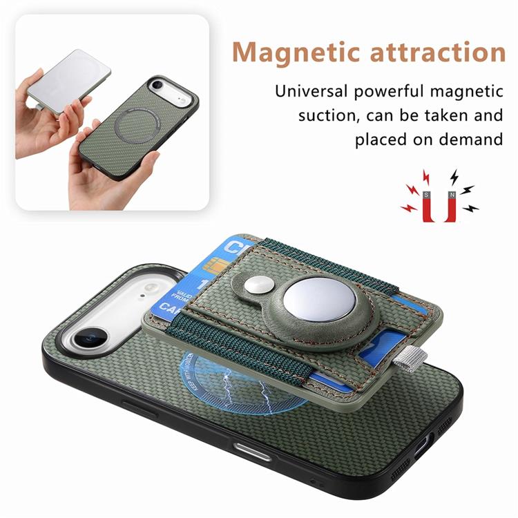 iPhone 17 Air Mobilskal AirTag Detachable korthållare Läder + TPU + PC - Grön
