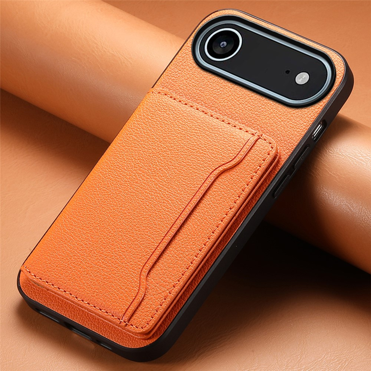 iPhone Air Mobilskal Korthållare Calf Texture Kickstand Läder - Orange