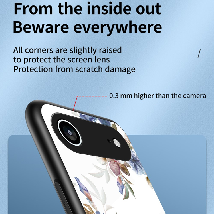 Med en flexibel TPU-ram är skalet enkelt att sätta på och ta av, samtidigt som det ger ett bekvämt grepp i handen. Baksidan i härdat glas har hög reptålighet och skyddar din mobil mot repor och vardagligt slitage. Dessutom har skalet upphöjda kanter runt både kamera och skärm för extra skydd mot repor och stötar där det behövs mest.