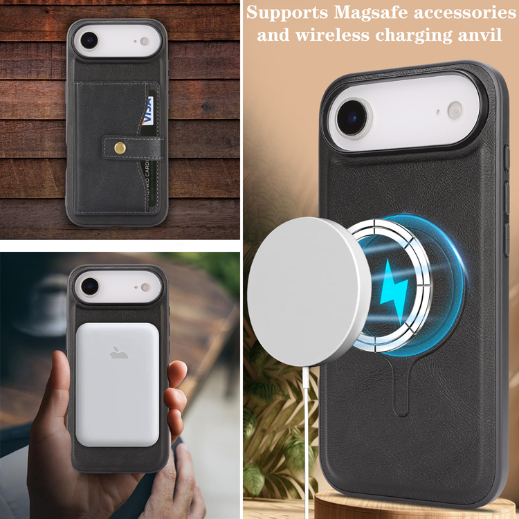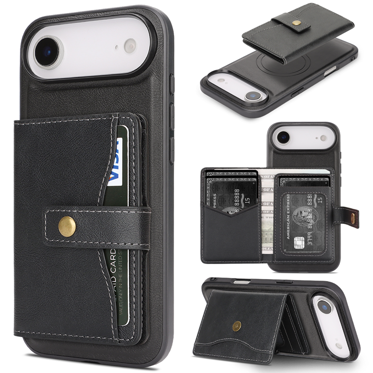 iPhone Air Mobilskal MagSafe Kickstand Detachable Korthållare PU Läder Coated TPU - Svart