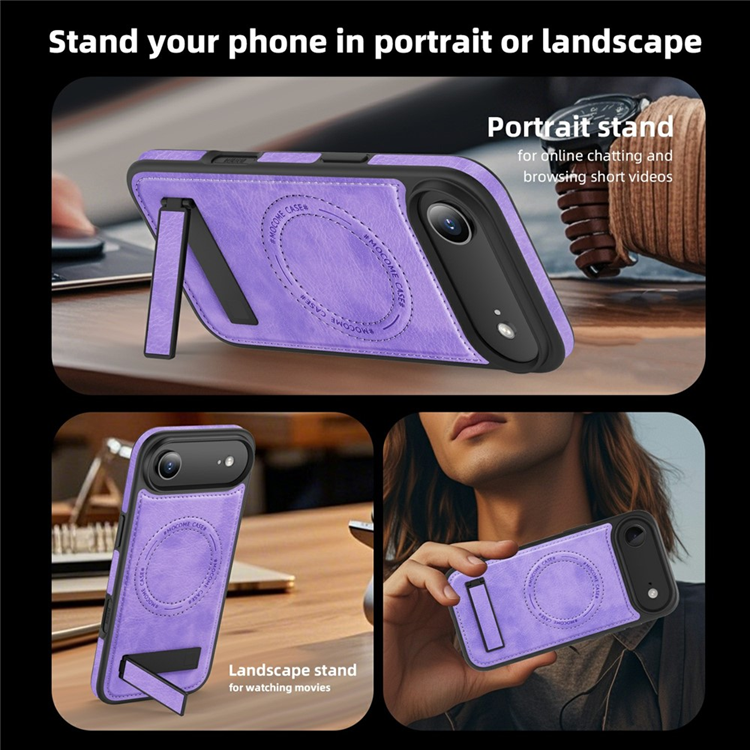 iPhone Air Mobilskal MagSafe Kickstand Läder - Ljuslila