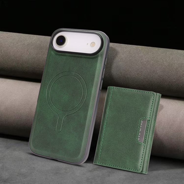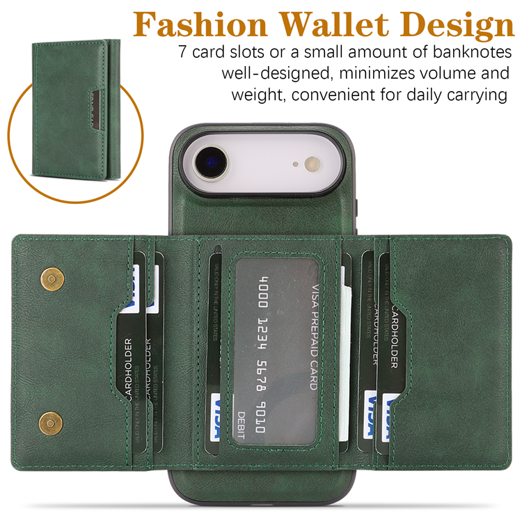 iPhone Air Mobilskal MagSafe Kickstand Tri-fold Korthållare PU Läder Coated TPU - Grön