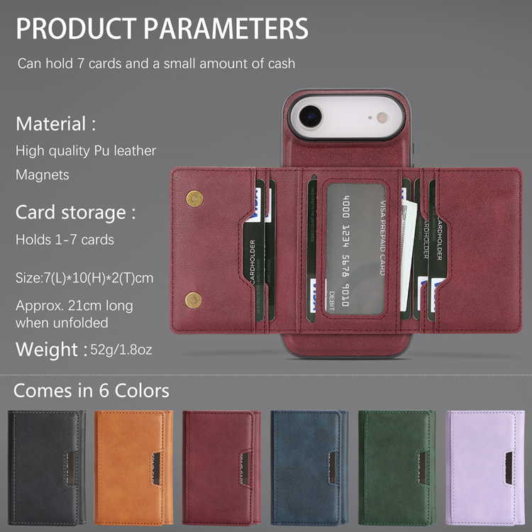 iPhone Air Mobilskal MagSafe Kickstand Tri-fold Korthållare PU Läder Coated TPU - Röd