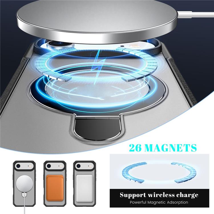 Med den inbyggda 360° roterande ställfunktionen kan du njuta av handsfree-videor, samtal eller möten både i stående och liggande läge. Skalet är dessutom helt kompatibelt med MagSafe och utrustat med starka magneter som även gör det enkelt att använda magnetiska bilfästen – en smidig lösning för säkrare körning. Lägg till militärklassat skydd och du har ett mobilskal som klarar tuffa situationer, samtidigt som det ser stilrent ut.