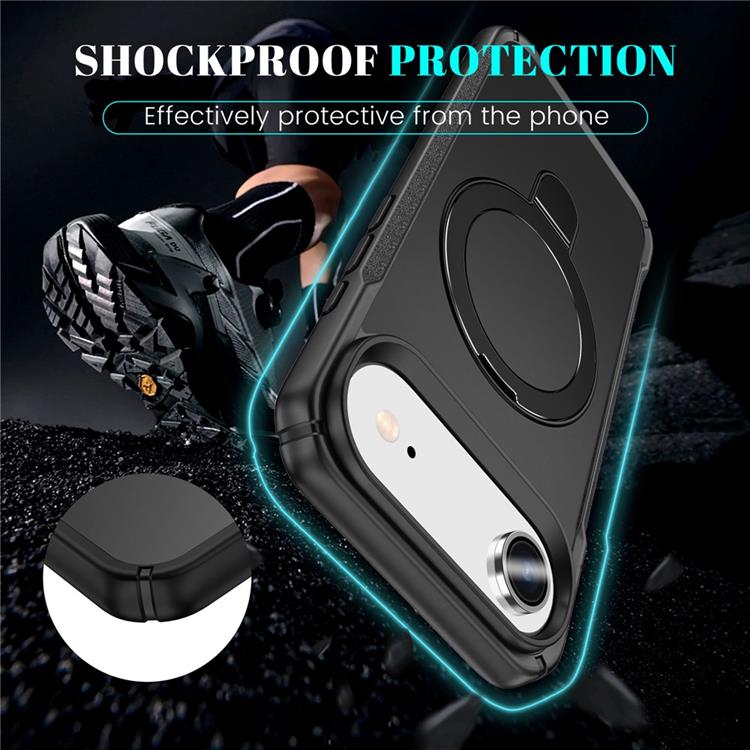 iPhone Air Mobilskal MagSafe Stötsäker Rotating Kickstand TPU + PC - Svart