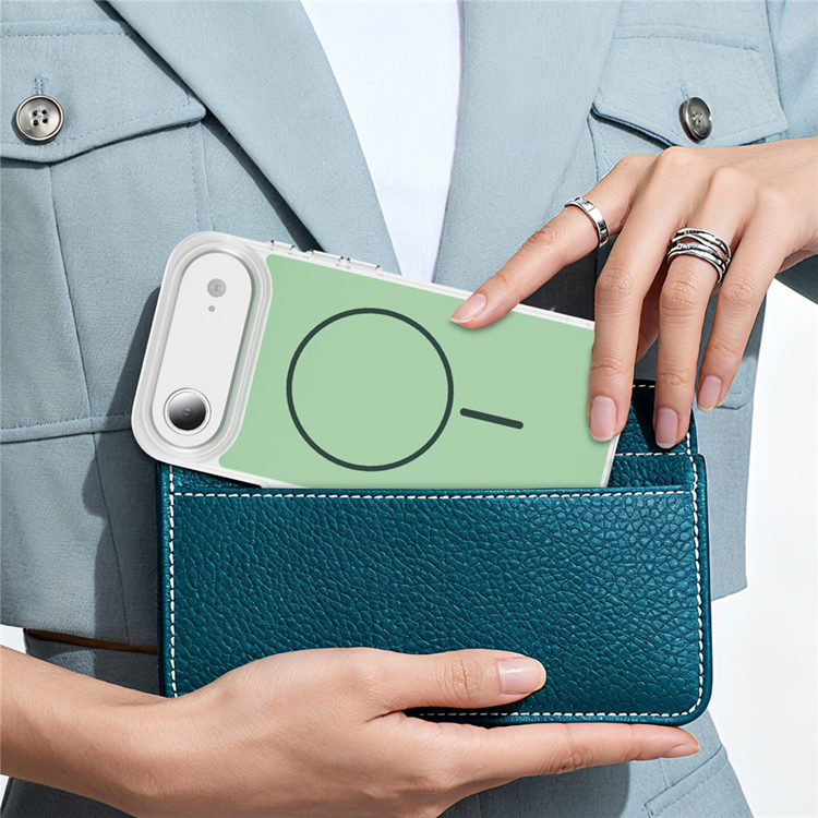 Det kraftfulla magnetiska N52-ringmagneten gör skalet helt MagSafe-kompatibelt, så du får snabb och säker trådlös laddning utan att behöva ta av något. Den frostade ytan med ice-feel-partiklar ger en sval, matt känsla som inte bara känns premium – den minskar även fingeravtryck och fettmärken. Med förhöjda kanter runt kamera och skärm får du dessutom ett omslutande skydd som är redo för vardagens alla risker.