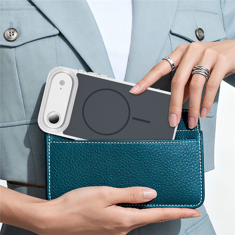 Det kraftfulla magnetiska N52-ringmagneten gör skalet helt MagSafe-kompatibelt, så du får snabb och säker trådlös laddning utan att behöva ta av något. Den frostade ytan med ice-feel-partiklar ger en sval, matt känsla som inte bara känns premium – den minskar även fingeravtryck och fettmärken. Med förhöjda kanter runt kamera och skärm får du dessutom ett omslutande skydd som är redo för vardagens alla risker.
