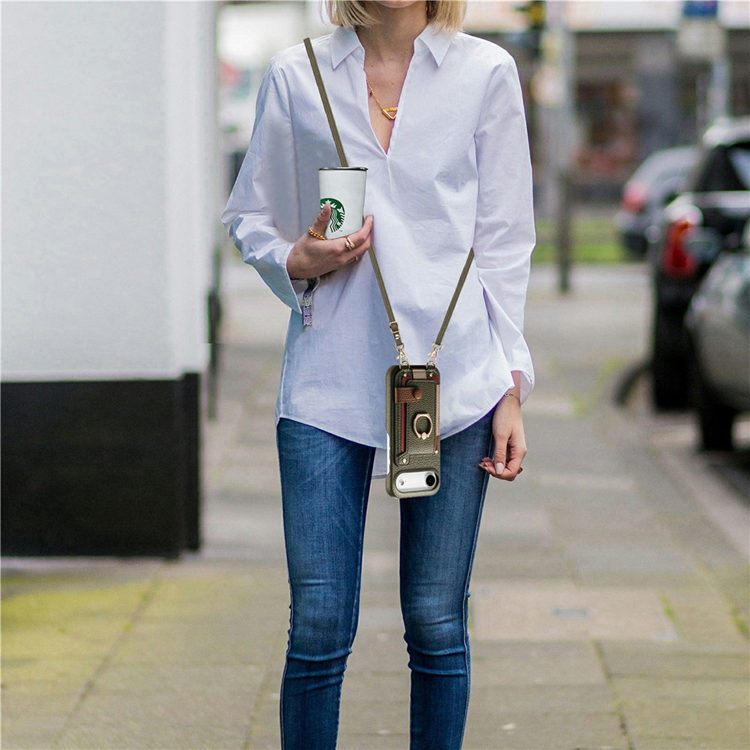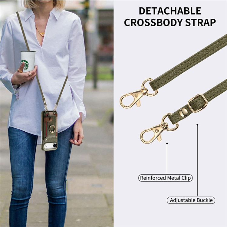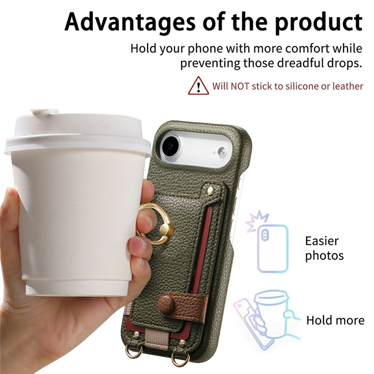 iPhone Air Mobilskal med Korthållare och Axelrem Ring Kickstand Läder + PC - Midnattsgrön