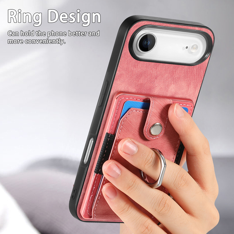 iPhone Air Mobilskal med Korthållare Läder Kickstand - Rosa