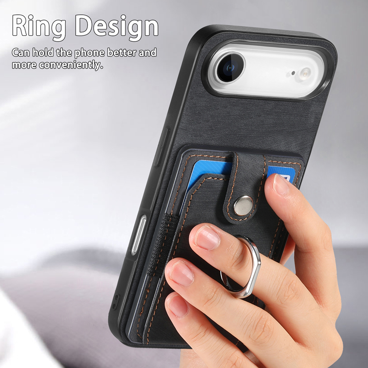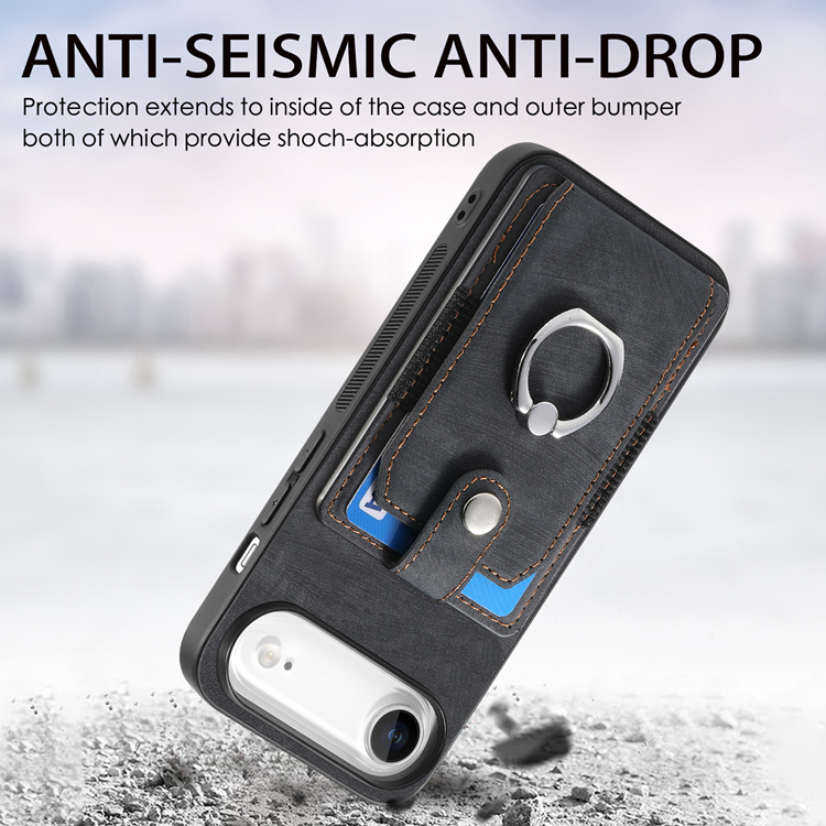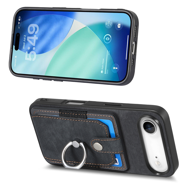 iPhone Air Mobilskal med Korthållare Läder Kickstand - Svart