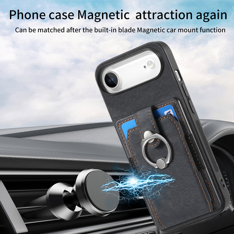 IPhone Air Mobilskal med Korthållare Läder Kickstand - Svart