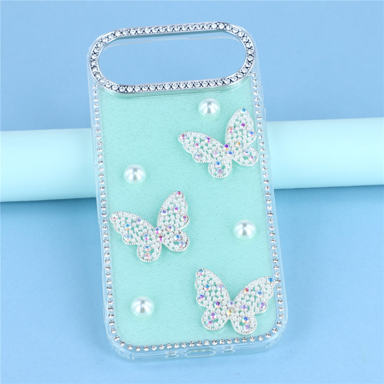 iPhone Air Mobilskal Rhinestone Edge Pearl Butterfly - Glittrigt Ljusgrön