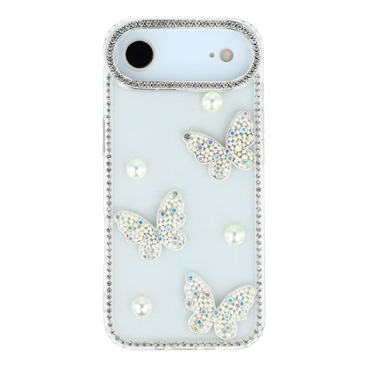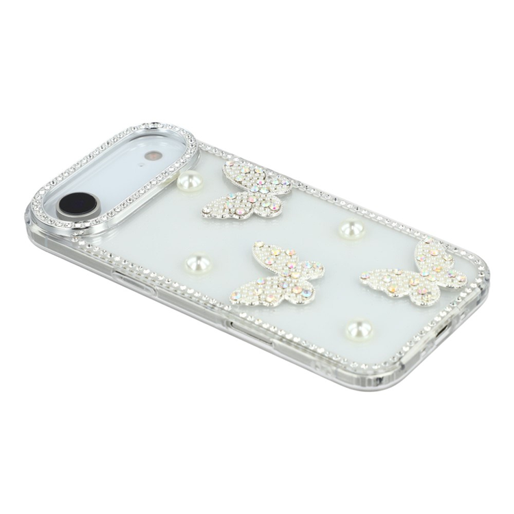 iPhone Air Mobilskal Rhinestone Edge Pearl Butterfly - Glittrigt Transparent