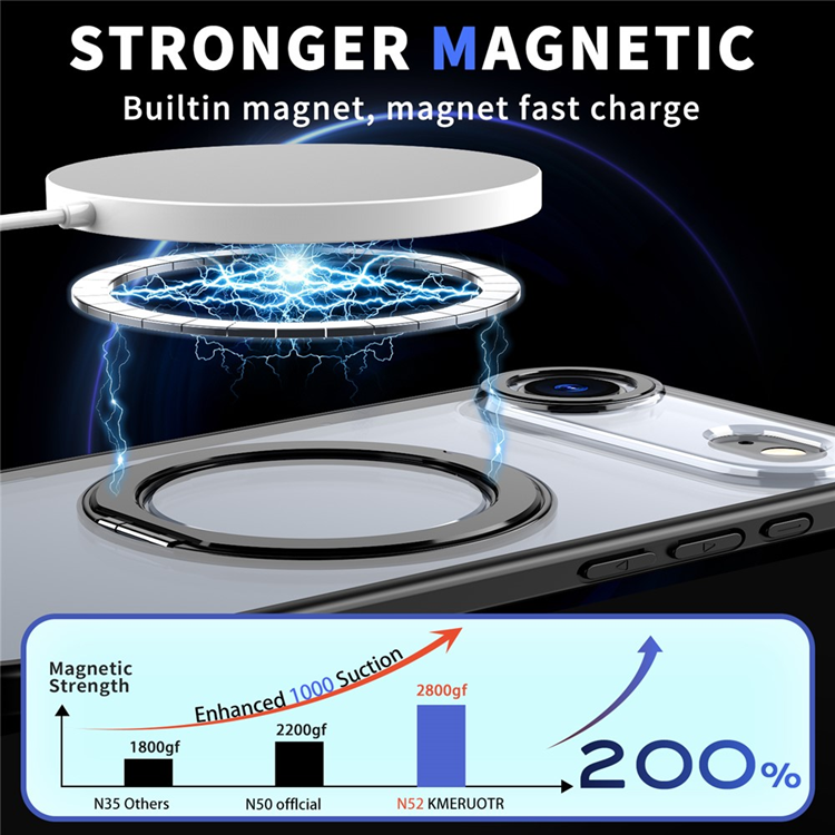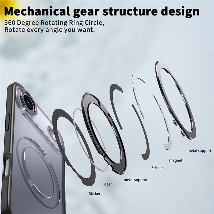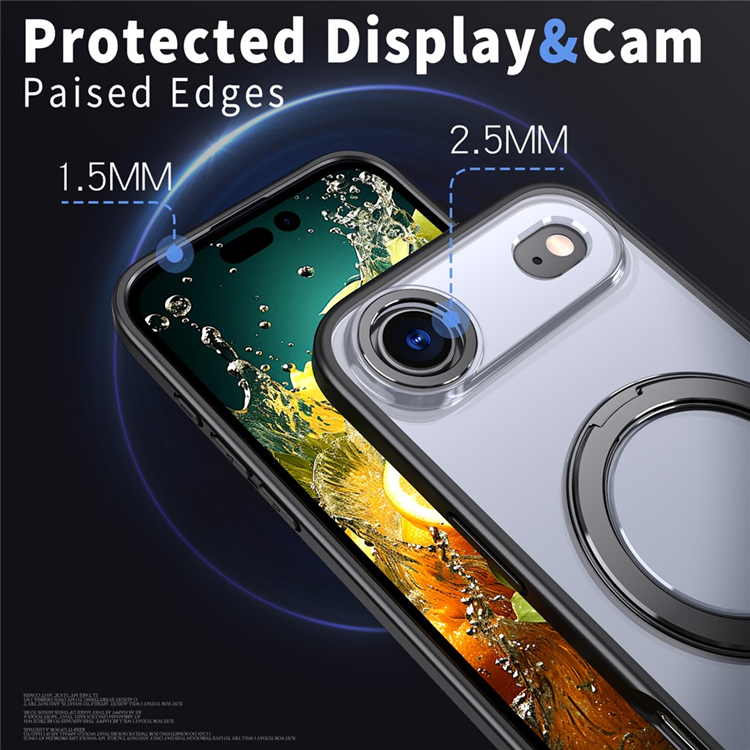 Skalet är dessutom utrustat med en multifunktionell 360° roterande ringhållare som gör det enklare att hålla mobilen säkert i handen eller använda den som kickstand för handsfree-visning av filmer och videosamtal. Med en inbyggd magnetisk ring är det fullt kompatibelt med MagSafe, vilket gör laddning och användning av magnetiska tillbehör både smidigt och stabilt. De upphöjda kanterna runt skärm och kamera ger extra skydd mot repor och stötar, så att din mobil alltid är skyddad från vardagens risker.