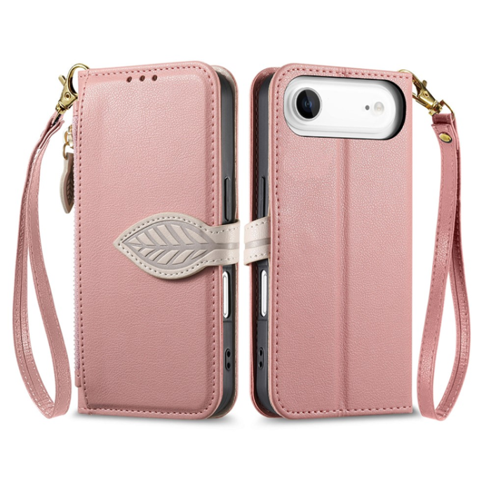 iPhone Air Plånboksfodral med Handrem Leaf Shape Magnetiskt Spänne Läder - Roséguld
