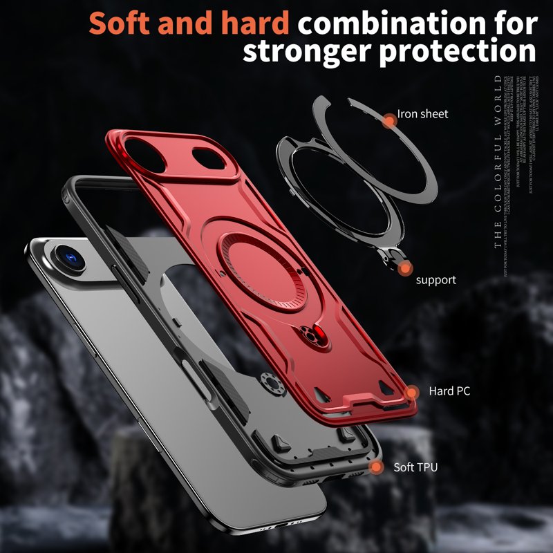 Detta fodral erbjuder militärklassat skydd för din telefon. Tillverkat av hållbara PC- och TPU-material, ger det stöt- och fallskydd. Med en inbyggd kickstand och MagSafe-kompatibilitet är detta fodral både praktiskt och funktionellt. Håll din enhet säker och njut av en smidig användarupplevelse.