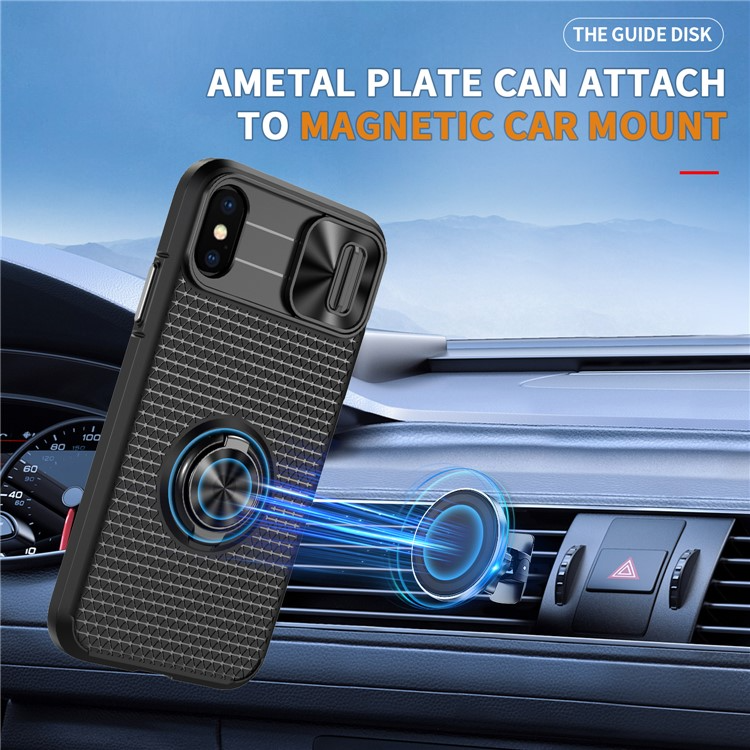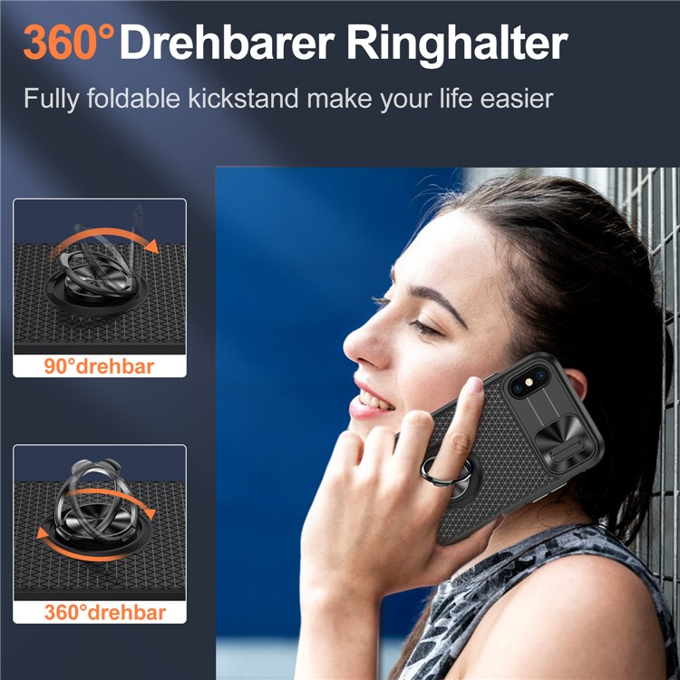 iPhone X/XS Mobilskal Kickstand PC + TPU Skjut Kameraskydd - Svart
